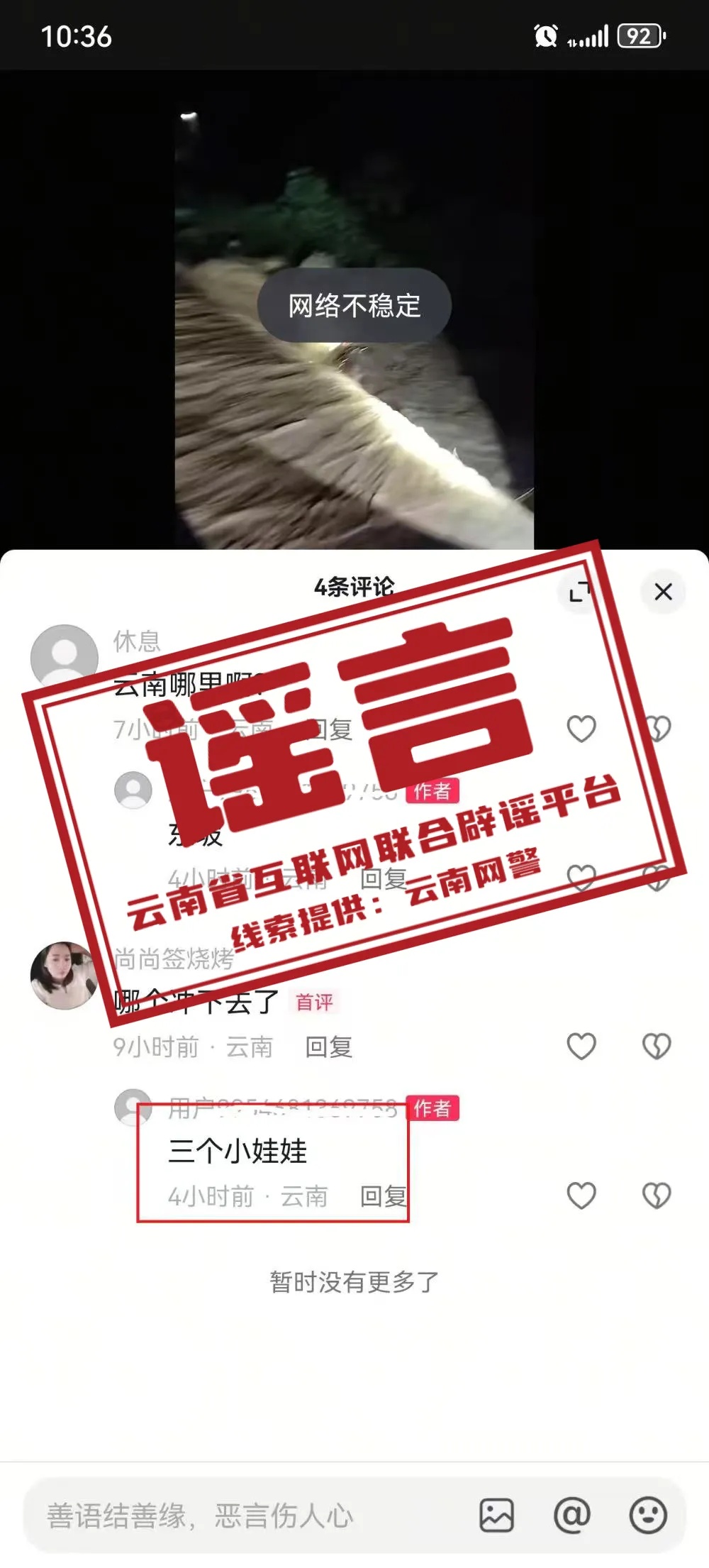 造谣“洪水冲走三个娃娃”,云南网警依法查处!